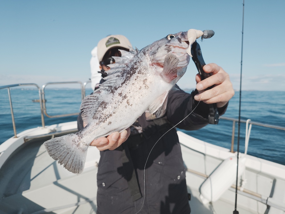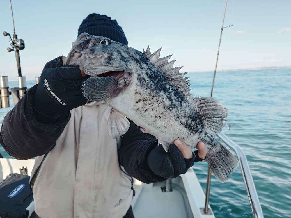 今日は若潮で朝から潮の流れがあり最初に入った場所でいきなり来ました本命クロソイ!しかもデカい!57cmです😍 もうそこからは勢いづいてどデカヒラメの70cmが釣れるはクロソイ追加で3匹プラスにカサゴに至っては50匹超の釣果で皆さん大満足の釣行となりました😆