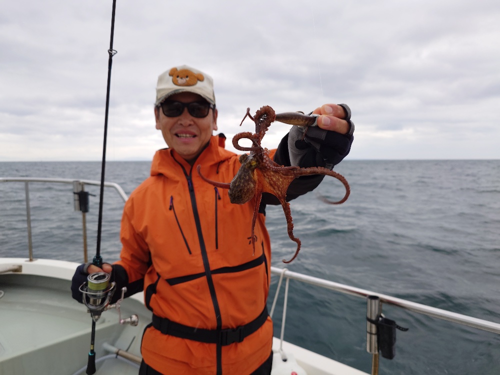 開始早々10分も経たないうちに本命アオリイカが連続ヒットで幸先の良いスタート✨ その後はポツリポツリと拾い釣りになり、風が強まってきてからはアタリが遠のき10時過ぎに納竿。トータル8杯キャッチしていただきました🦑 ✨