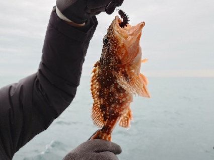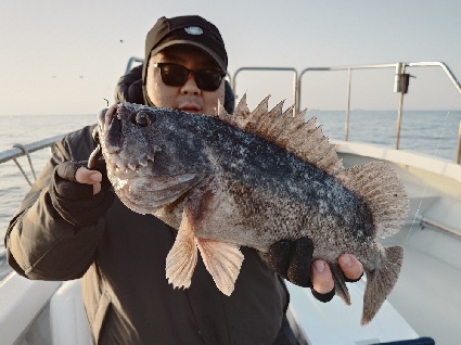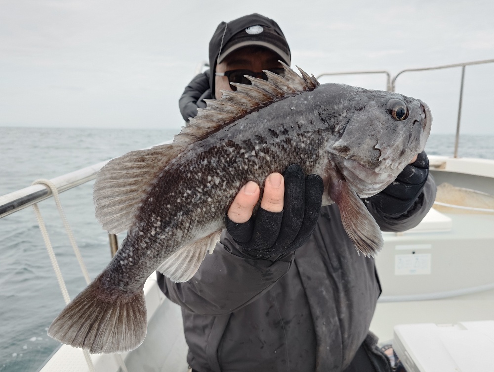今日は、前回出船した時の様な濁りは無く澄んだ海で好釣果✨ クロソイは50UP2本含め4本出たしカサゴは35匹と安定の釣果。予想外なところではマダラの80cmが出ました。今年はかなり湾奥までタラが入り込んでいる様で、時折魚探にマダラらしき反応が出ていました。ロックフィッシュを狙いながらマダラが釣れてくれれば良いお土産になるので今後も期待大です。お客様曰く今日はタラフライとタラ鍋だそうです。美味そう🤤 その他ヒラメやアイナメなども釣れてます。