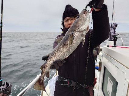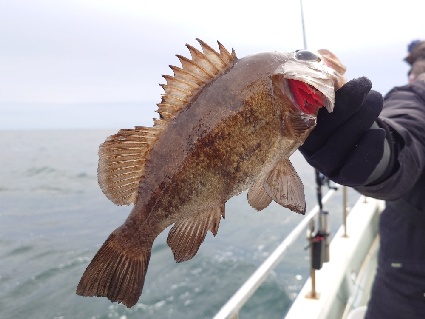 今日は、はじめ西の風強く後に北西の風に変わり(風速5~6m)船が大揺れするせいかとても釣り難くアタリの少ない日になってしまいました。
