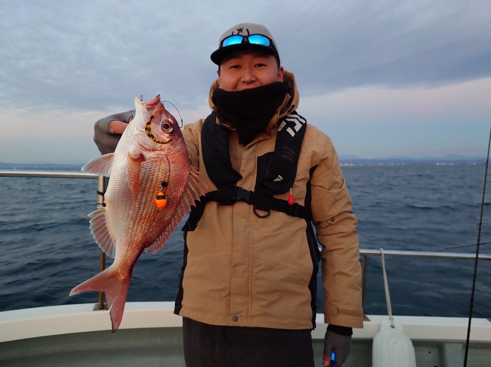 今回は早朝にファーストフィッシュがマダイと幸先の良いスタートでした。カナガシラやホウボウもあがり順調に釣れるかと思いきや、最初の潮止まりから上げ潮がかかってからは潮が流れず船が一点に止まってしまう0ノット状態に… あちこち場所を転々としましたが魚信無し💦 昼過ぎに2回目の潮変わりがあったので変わり目を確認したくお客様と相談のうえサービス延長に突入!そうしたらカナガシラのアタリが増えだしイナワラも食ってくる様になったと思ったら遂に来ました本命マダイ!✨もう明らかにマダイでしょ!って叩きを見せて何度も突っ込む元気いっぱいの64cmでした😍